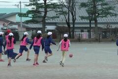 『場を同じにして、2年生と6年生が体育でサッカー』