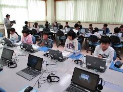 初めてのパソコン教室では、マウスの使い方からスタートし、2時間でイラスト入りのカレンダーを作り上げました。初めてパソコンをさわる児童も多く、「ドキドキ」しながらの作業でしたが、「指示をよく聞き」作品が完成すると大喜びでした。