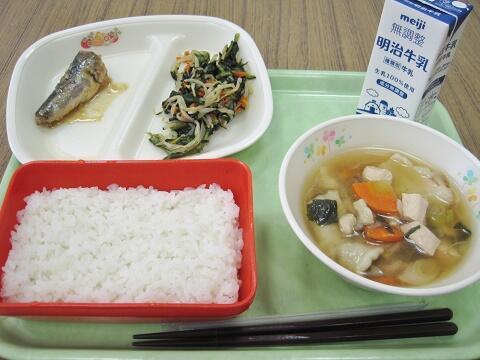 鰯胡麻味噌煮・磯辺和え・せんべい汁 601kcal