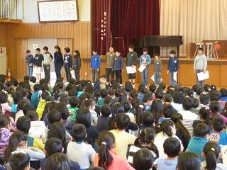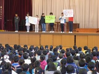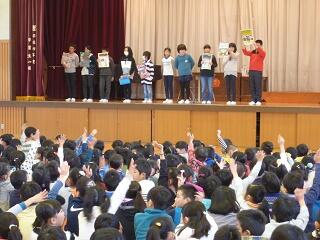 今日の発表にために、図書委員は昼休みにたくさん練習してきました。アイディアを出し合い、協力する姿がよく見られました。これからも、南小のために頑張ります。