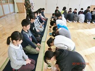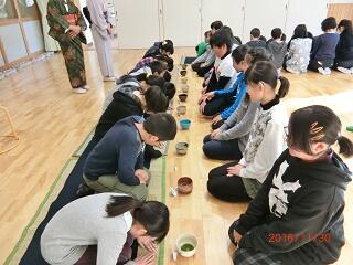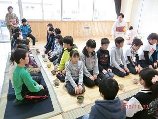 茶道の歴史や作法について、楽しく学習させていただき、6年生の子ども達は目を輝かせながら茶道体験をしていました。