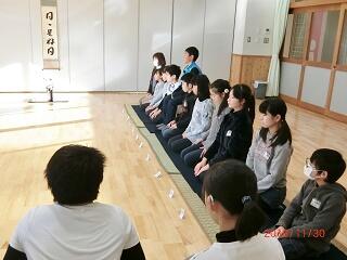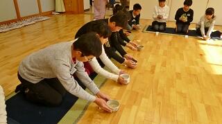 あたたかな日差しが差し込む多目的ホールで、裏千家の小口先生を中心とした茶道の先生方に、茶道教室を開いていただきました。