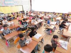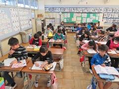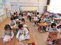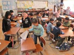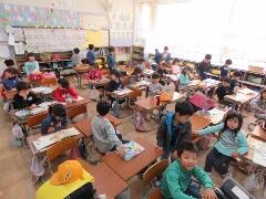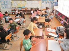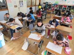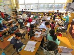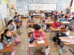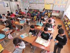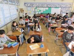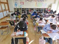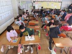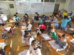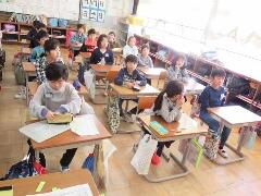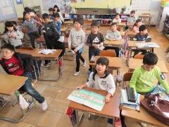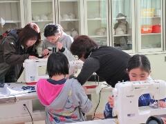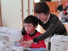 5年生は新年早々ですが、ミシンボランティアさんにお世話になってエプロン作りの続きを行いました。今回は前回の経験を生かして、さらに上手にレベルアップすることができました。早く上手に縫えるこつや、正確にきれいに仕上げるこつ等を教えていただきました。例えば、しつけ縫いをするときは、表から針をいれたらすぐ糸を引くのでなく、表と裏をセットにして糸を引くと倍の速さで縫えること、アイロンはスチームを上手に使うとしっかり折り目がつけられること等です。