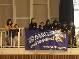 11月23日(月)ミニバスケットボールの交流大会(4年生以下)が、さくら市氏家体育館を会場に行われました。3校のリーグ戦で行っており、第1試合は、矢板クラブとの熱戦が繰り広げられました。序盤から良い流れでゲームを進め、4年生の3名を中心に、2・3年生メンバーも頑張りを見せていました。時折、審判員からルール等の指導を受ける場面や相手チームが攻めるゴールを間違えるハプニングも見られましたが、監督からのアドバイスを受け、観覧席からも5・6年生や保護者から温かい声援が送られ、終始ファイト溢れるプレーが見られました。応援している我々も、子ども達から元気を分けてもらうことができました。