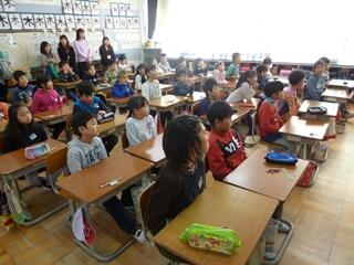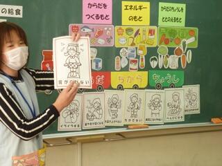 食品によって「体を丈夫」にしたり「調子を整え」たりする役割を学んだ子どもたち。これからもは体のことも考えながら、バランスよく食事をしてほしいと思います。 (担当:笠井)