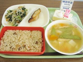 6年生にとっては、小学校生活の給食です。卒業お祝いケーキが出ました。