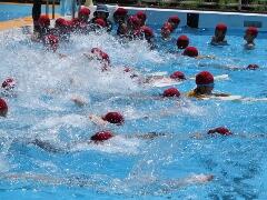 『今日は、プール最高です!赤帽子と緑帽子!!』