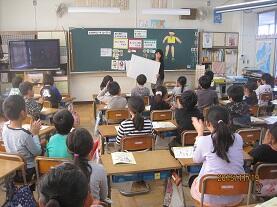 最後に、パネルシアターをとおして学習の振り返りを皆で行いましたが、子ども達はお話の内容に興味を持ち、引き込まれていました。柿﨑先生、ご協力ありがとうございました。