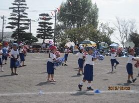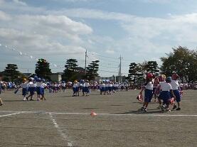 全校児童が紅白に分かれ、6つのカゴを目がけてまりを投げ入れました。全校児童が一斉にかごを目がけてまりを投げ上げる光景は圧巻です。練習の時は、コツがつかめず高学年のカゴには、数えるほどしか入っていませんでしたが、本番では作戦を立てて取り組み、全力を出して頑張っていました。