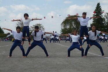 オープニングは、全員ピラミッド。今年のピラミッドは男女別ではなく、クラスで一つのピラミッドを作りました。クラスの団結力を高めたい、という思いからです。エンディングの未来に向かう「かけ橋」も、クラスごとに作りました。クラスの友達で声をかけ合いながら一つの物を作り上げることを通し、以前よりも絆が深まったように感じました。
