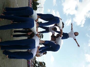 今年の組体操のテーマは「未来に向かって」でした。本番の演技では、3曲のBGMに合わせて集中し、自分の役割をしっかり果たしながらの演技を披露することができ最高の出来映えでした。