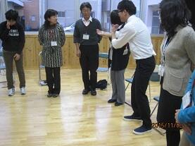 後半は、更にワークショップ(参加体験型学習)型の研修を行い、人権研修などで中心となる活動の前に行う「アイスブレーキング」の手法を体験することができ、我々教職員も和やかな雰囲気の中での研修となり、たいへん有意義な研修会となりました。