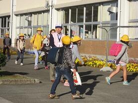 また、今朝は雲ひとつない抜けるような青空のもと、さくら市青少年センターによる挨拶巡回活動が行われました。和輪話隊のメンバーが見え、子ども達への「おはよう!」の声かけ運動を行ってくださいました。子ども達も、青空に負けないくらいのさわやかな挨拶を元気に交わし合いながら登校する様子が見られました。
