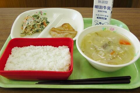 鶏肉の照り焼き・豆乳汁の野菜仕立て・春菊のツナ和え 660kcal