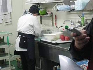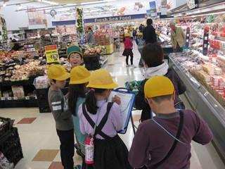 副店長さん、店員さんに案内されて、いつもは見ることができない店の裏側、「バックヤード」に入れていただき、青果作業室や鮮魚、精肉作業室での作業の様子を見せていただきました。お店の方々の説明を聞いたり、買い物に来ていたお客さんにインタビューをしたりしと、短い時間でしたが意欲的に学習することができました。 (担当:地神)