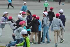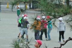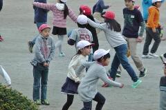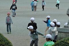 「はいポーズ!」カラフルなボールを持って、鬼ごっこ・・・南っ子は、やはり校庭での活動(外遊び)が似合います。元気キッズ大爆発の昼休みでした。
