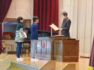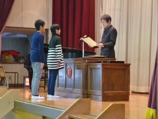 運動委員会委員長が児童代表として、賞状を受け取りました。