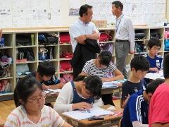 昨日、夏休み前と言うこともあり、復習テストを実施しているクラスもありましたが、花塚市長さんと市教育委員会の先生方が授業参観と施設設備の見学のために来校されました。丁寧に、授業を参観されていました。子どもたちの励みになりました!