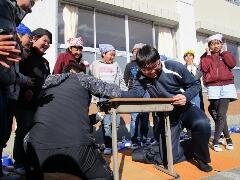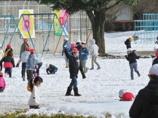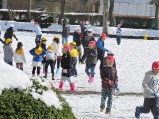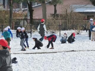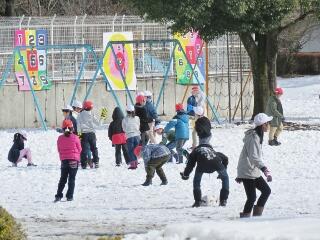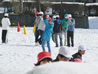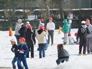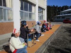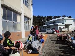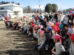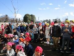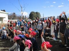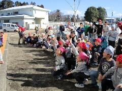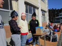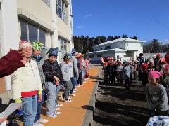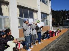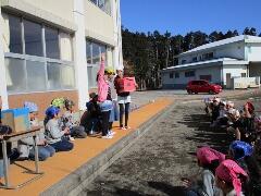 お昼休みにあいさつ集会委員会の企画で「未来予想ゲーム」を行いました。インフルエンザの流行期のため、室内での開催でなく、校舎前のオレンジロードで行いました。「サイコロで一番大きな目を出す人はだれ?」「じゃんけんで勝ち残る人は?」「腕相撲で勝つのはどっち?」等の問題を出し、子ども達は楽しそうに予想して手を上げていました。