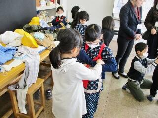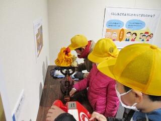 子供たちは、昔は明かりをつけたり、ごはんをたいたりするのも大変だった分家族全員で仕事を分担し、工夫し生活していたことを学びました。 (担当:笠井)