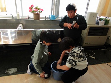 今日も奉仕活動として、手洗い場とトイレの清掃をしてくれました。