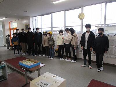 卒業式予行の後に、本校同窓会の小野会長が来校し、同窓会入会式が行われました。コロナウイルス感染症の影響で4年ぶりの開催でしたが、厳粛な中、緊張の面持ちで、今年度の卒業生17名が参加しました。