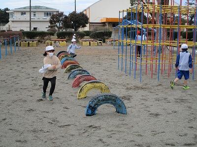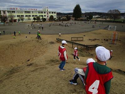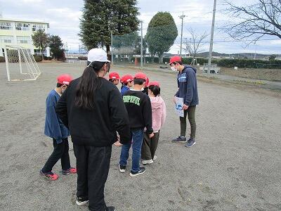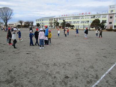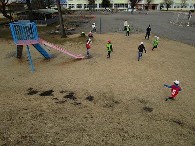 3月13日(水)は4年生。悪天候で延期になったため、最終になりました。遊びは「ケイドロ」です。