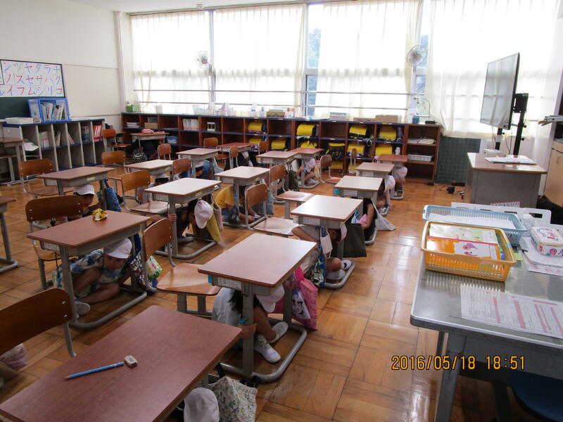 避難場所は第1避難場所(校庭南側体育倉庫前)