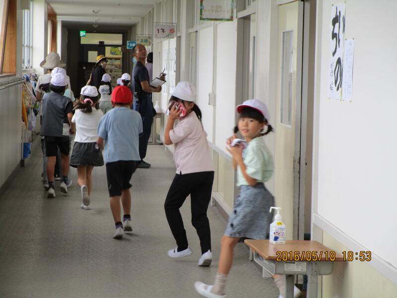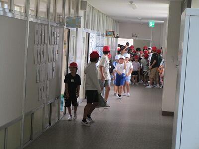 避難開始! 各学年ごとの避難経路を通り校庭へ