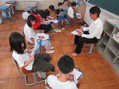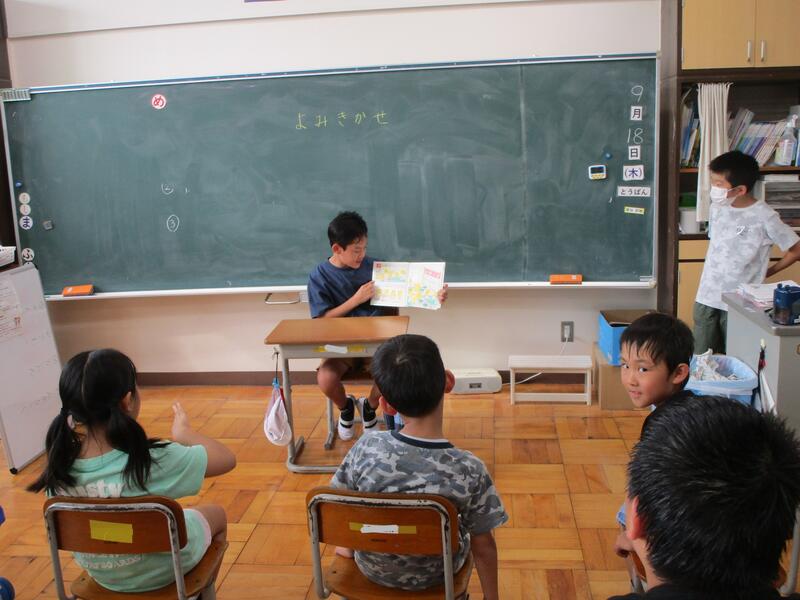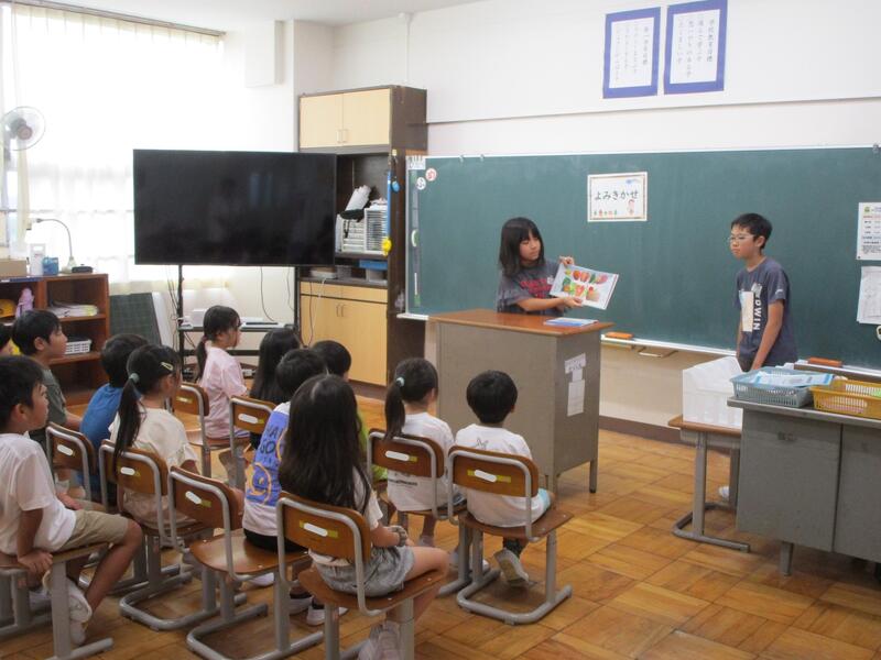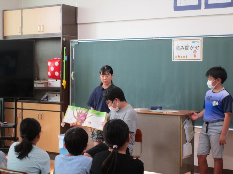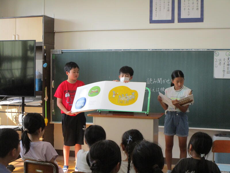 教職員も図書委員会児童も、準備や練習をしっかりして、読み聞かせを行いました。聞く子どもたちも、本に引きこまれる様子でした。