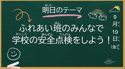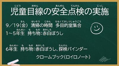毎月、教職員が実施している「安全点検」を、全校児童で実施しました。