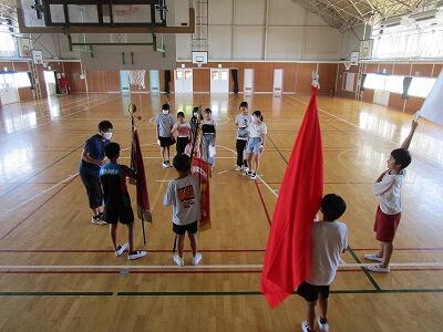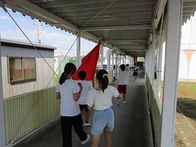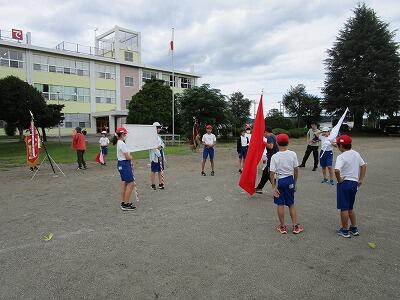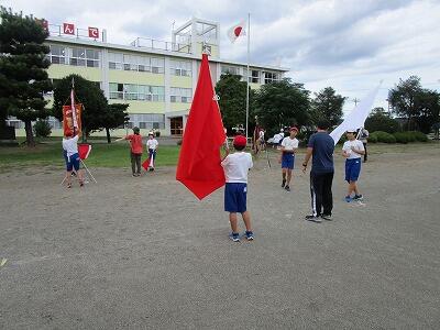 9月19日(金)昼休み 準備や片付け、旗の持ち方も手際よく