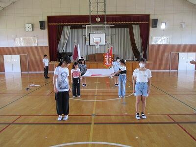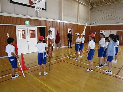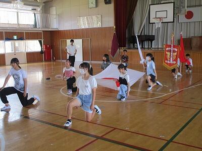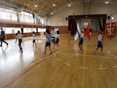 10月1日(水)から始まる運動会の全校練習に向けて、応援団長をはじめとする入場行進に関わる6年生が、練習を開始しています。