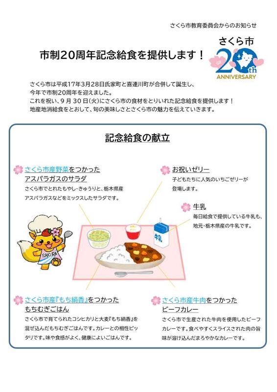 市制20周年記念給食献立について ~さくら市教育委員会~