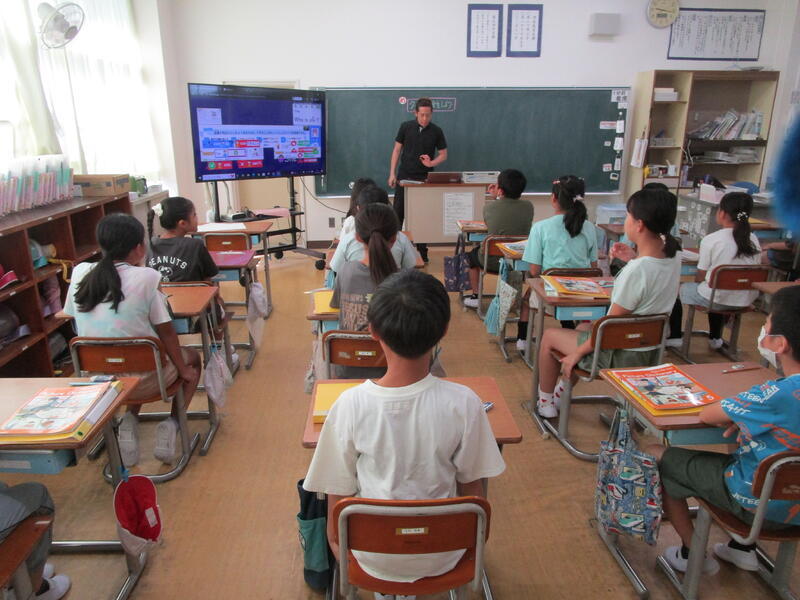 5年生の外国語の授業です。今年度もALTのワン ケヴィン ショウイチと英語活動支援員の大坂真由美が連携し、T・Tによる授業を行っています。