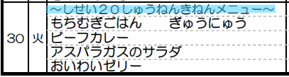 明日は、さくら市の食材をとりいれた市制20周年記念給食献立です。