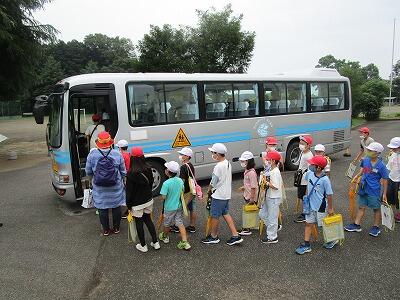 学校敷地内にある小池や小川に図工で作成した船を浮かばせること、小池にはどんな生物がいるのかを見付けることがめあてです。