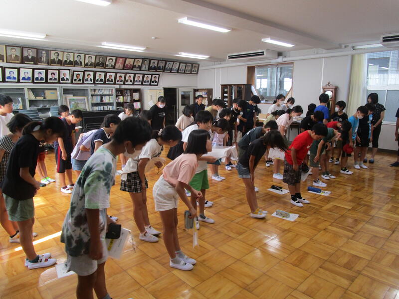 明日から夏休みということで、夏休み目最終日の今日の2校時終了後「夏休み前集会」を行いました。