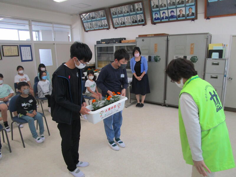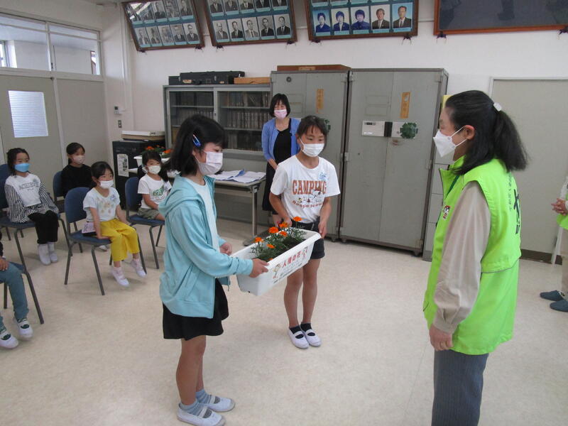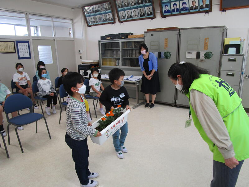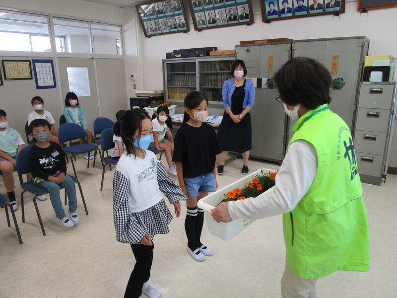 花々が喜んでいるように感じます。ご指導、ご協力くださったボランティアの皆さん、ありがとうございました。児童の皆さん、これから愛情をもって育てていきましょう。