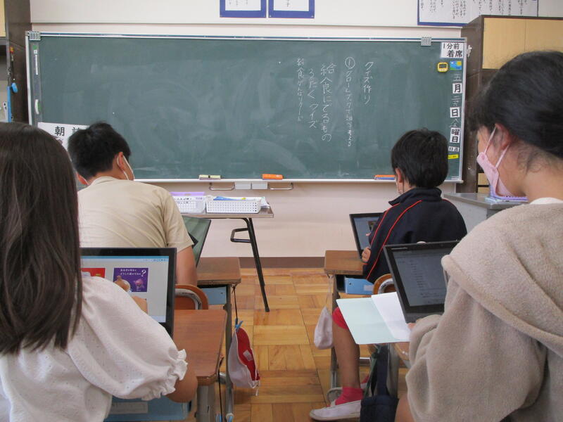 教育実習生がT1、担当の関教諭がT2を務め、授業を展開しました。「朝食の役割を考えよう」の1時間目で「食事の大切さと仕方を理解する」ことが目標です。