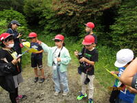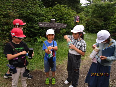 午前中の活動は「オリエンテーリング」。施設の周りや森の中を探検しました。