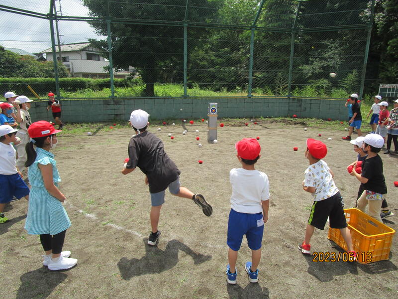 カゴ内のまりがなくなったら、全員で集めて再スタートします。