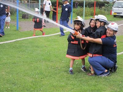 消防団放水体験・・・熟田区消防団の皆さん、ありがとうございました。