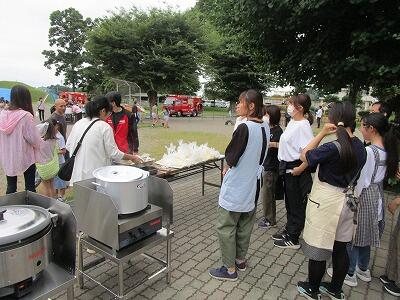炊き出し体験(蒸しパン、おにぎり)・・・熟田小職員、さくら市教委、学校運営協議会、熟田小PTAの皆さん、そして中学生ボランティアの皆さん、ありがとうございました。