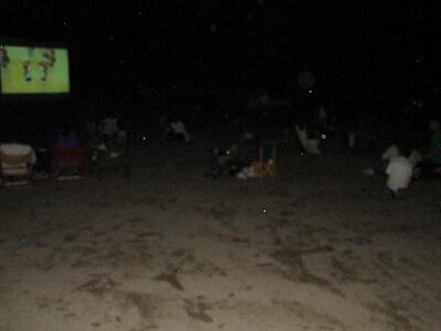薄暗くなったきたところで、代表の石原さん、校長、消防団代表のあいさつ後、映画の上映時間となりました。