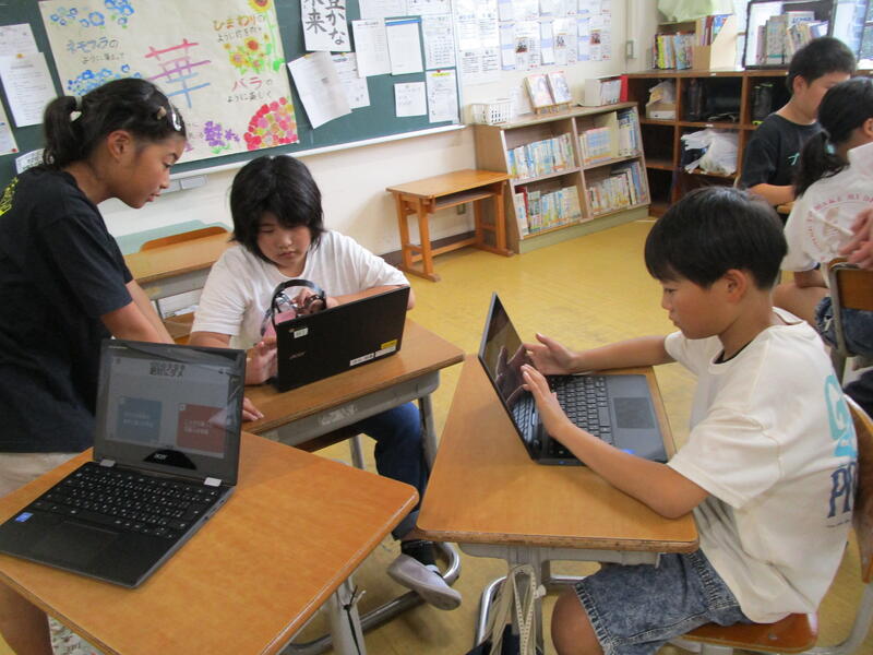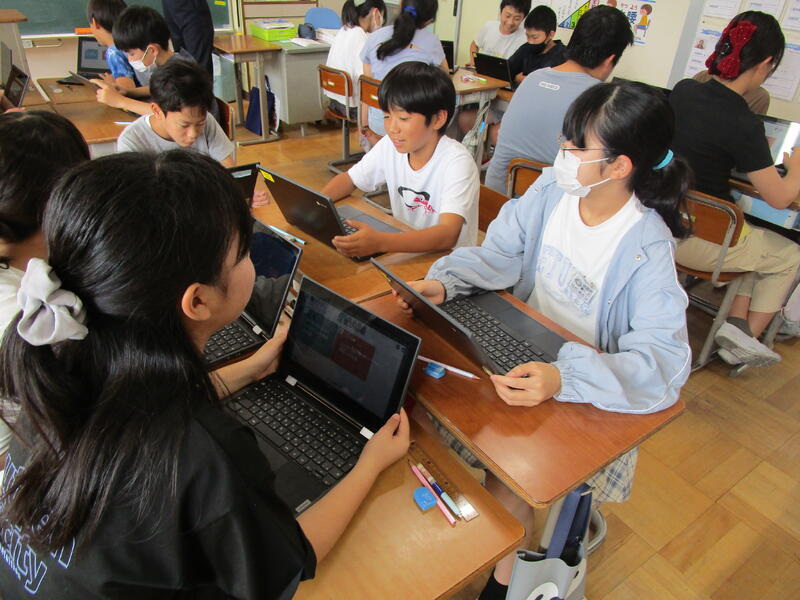 ICT支援員の先生を講師に5・6年生が情報モラルについて学ぶ授業を行いました。SNSは便利なものであると同時に誰かを傷つけてしまったり、犯罪に巻き込まれたりする危険性もあります。具体的な例を参考にグループの友達と話し合いながら、どこに問題がありそうか一生懸命考えていました。