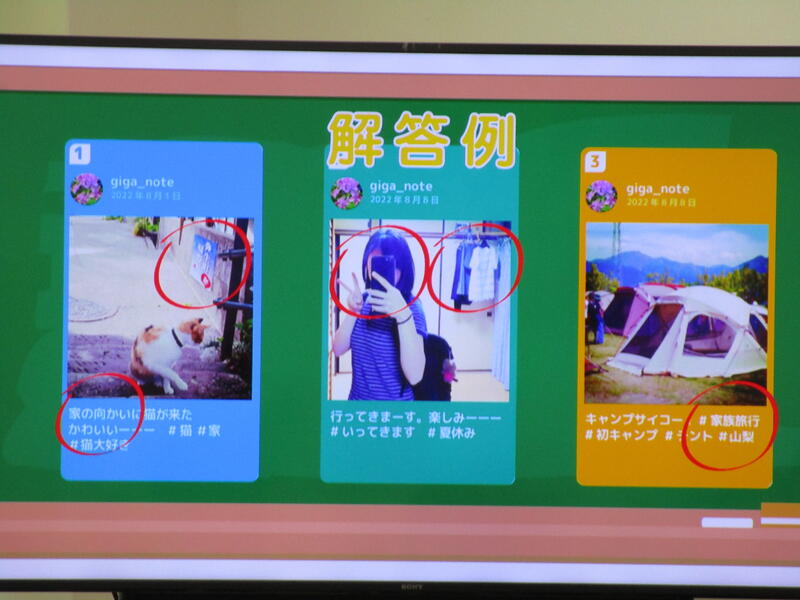 個人情報は安易に公開しないこと、誰かに迷惑をかけたり傷つけたりする内容ではないか考えること、一度SNS上に投稿したものは消すことは難しいこと(デジタルタトゥー)をいつも心にとめておくことなどが大切だと児童は気付くことができました。