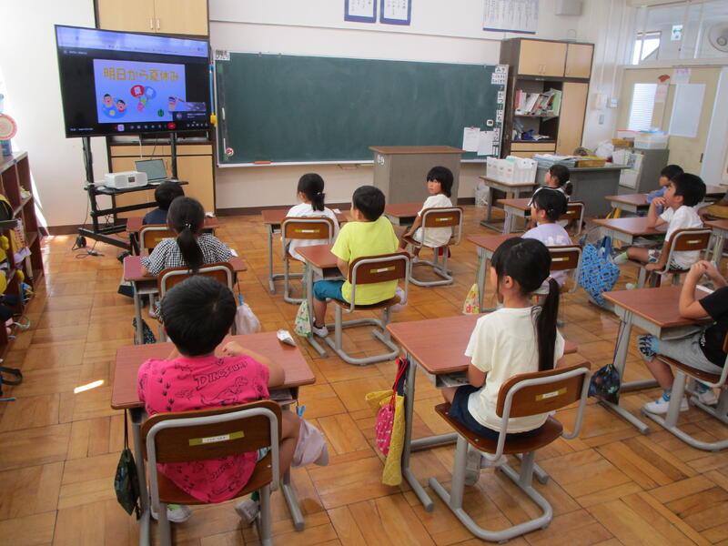 続いて、学習指導主任から「夏休み中の学習」について、児童主任から「夏休み中の生活」についてのお話がありました。