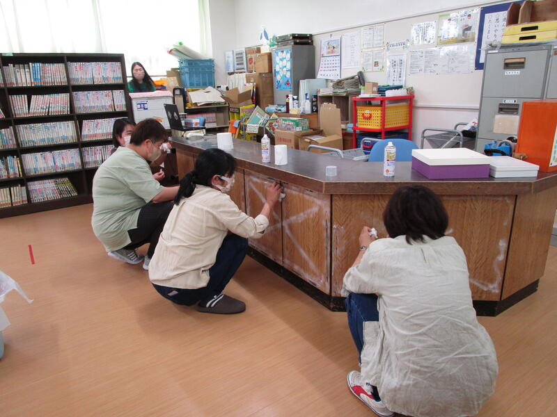 図書カウンター前面のカバーの張り替え
