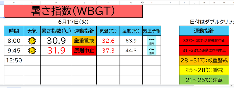 この後、さらに数値が上がることが確実だったため、10時20分からの業間休みの外遊びを「中止」としました。